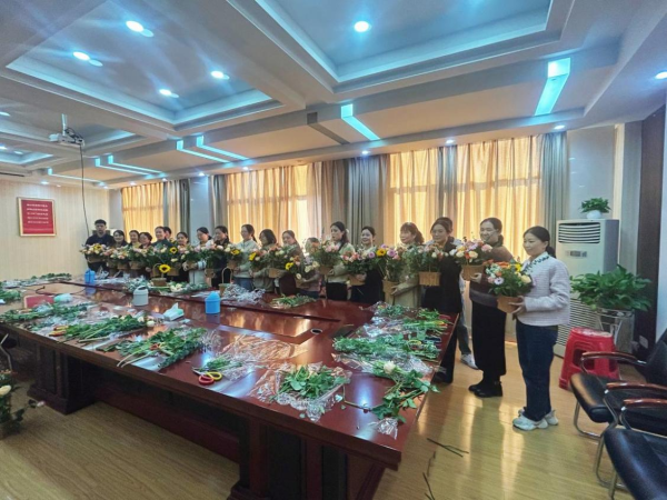 為切實(shí)關(guān)心關(guān)愛廣大職工,凝心聚力共筑推動經(jīng)營發(fā)展,進(jìn)一步提升郵政職工的幸福感和歸屬感,結(jié)合全省郵政開展的“溫暖服務(wù)季”活動,六安郵政工會11月14日組織開展了 “花藝療愈溫暖心靈”心理健康教育活動。 “選花、剪枝、摘葉,盡情發(fā)揮創(chuàng)造力、想象力…”插花現(xiàn)場,花藝?yán)蠋熞曰ㄋ嚬ぞ唛_場介紹基礎(chǔ)花藝?yán)碚?,不同形狀的花材呈現(xiàn)出風(fēng)格各異的造型,為大家展現(xiàn)精彩紛呈的插花藝術(shù)。大家在老師的精心指導(dǎo)下,將事先準(zhǔn)備好的玫瑰花、洋甘菊、向日葵等多種花材根據(jù)色彩、形狀,結(jié)合理論知識,充分發(fā)揮想象力進(jìn)行搭配,最終完成自己的插花作品。現(xiàn)場氛圍和諧溫馨,大家享受著花藝療愈帶來的快樂。