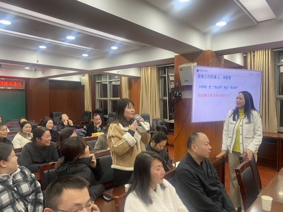 講座開(kāi)始,毛老師向在場(chǎng)職工們提出了一個(gè)問(wèn)題:“如何讓工作更快樂(lè)?”引導(dǎo)大家先思考,講座圍繞“從心出發(fā)、樂(lè)在職場(chǎng)”為主題,從壓力與工作、工作關(guān)系的處理、情緒的自我照顧、三個(gè)方面進(jìn)行講解,讓職工們明白了把“我必須”換成“我選擇”的意義。
