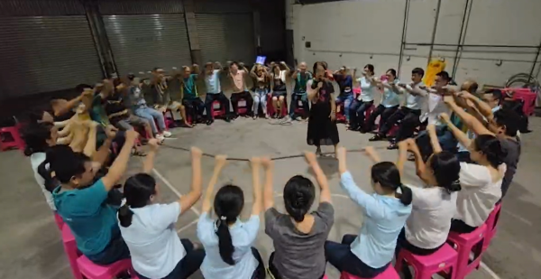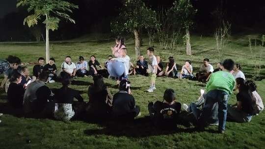 此次心理健康疏導(dǎo)活動(dòng)把理論內(nèi)容穿插在戶外游戲中開展。在熱身游戲“桃花朵朵開”中完成分組,以小組的方式進(jìn)行“穿越呼啦圈”“軌道運(yùn)輸”“不倒森林”小組賽,以眾人揮舞而成的“動(dòng)力圈”完成團(tuán)隊(duì)任務(wù)。