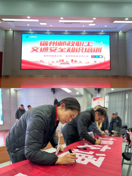 培訓會上,宣傳民警先為參會人員播放了交通安全警示教育宣傳片。然后,針對宿州郵政職業(yè)特點,講解了在投遞員在路上的交通安全出行應注意事項。期間,民警還結合近年發(fā)生的宿州發(fā)生的典型交通事故案例,采取以案促改的形式,深入淺出的將交通安全意識、常見駕駛陋習等方面發(fā)生事故的原因進行詳細講解,讓全市郵政員工意識到酒駕、醉駕、不戴頭盔等交通違法行為所帶來的危害性,并提醒大家要始終做文明交通的踐行者。在培訓講座結束之時,宿州郵政工會宣讀了《郵政職工交通安全倡議書》,號召全體郵政員工注重自身安全,遵守交通規(guī)則。同時,參培員工現(xiàn)場簽訂了《道路交通安全承諾書》。 通過此次培訓,郵政員工對交通安全法律法規(guī)有了更加清晰的認識,更加深刻理解了交通安全的重要性。大家在培訓后紛紛表示,在今后的工作和生活中,要時刻繃緊安全弦、樹牢安全觀,自覺遵守交通安全法規(guī),做文明人、行文明路、開文明車,樹立郵政隊伍良好形象。