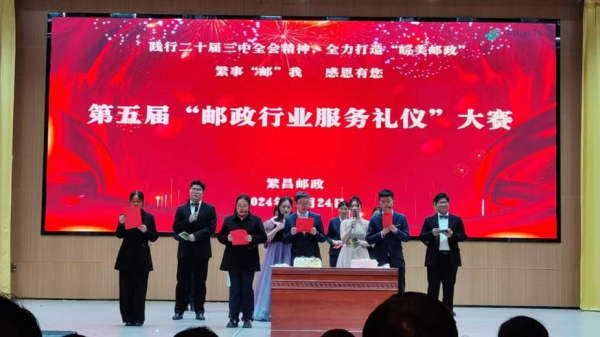 12月24日,第五屆郵政服務(wù)禮儀大賽在繁昌區(qū)分公司舉行。本次禮儀大賽賽場設(shè)在繁昌區(qū)區(qū)委黨校,市郵政管理局郭局長、繁昌區(qū)的部分政府領(lǐng)導(dǎo)和市分公司黨委委員也應(yīng)邀出席本次比賽。 活動開始,首先回顧了歷屆郵政服務(wù)禮儀大賽精彩畫面,隨后,以各網(wǎng)點、部門為單元的參賽隊依次展現(xiàn)了服務(wù)禮儀的規(guī)范,以專業(yè)的技能、優(yōu)雅的儀態(tài)和熱情的服務(wù)贏得了現(xiàn)場觀眾的陣陣掌聲。在自創(chuàng)環(huán)節(jié),參賽隊伍以小品、唱歌和舞蹈表演的表演形式給大家?guī)砉ぷ髦泻头?wù)禮儀相關(guān)的酸甜苦辣。 通過本次郵政服務(wù)禮儀大賽,蕪湖郵政進一步落實“三待三親”工作要求,提升員工凝聚力,夯實服務(wù)質(zhì)量根基,營造旺季發(fā)展氛圍。