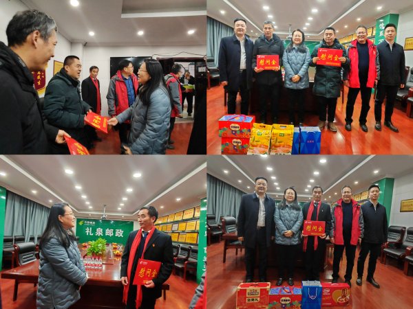 年末歲寒“送溫暖”,真情關(guān)愛(ài)“暖人心”。1月6日下午,省分公司黨委委員、副總經(jīng)理、工會(huì)主席劉磊、省寄遞事業(yè)部副總經(jīng)理郭繼東、李潤(rùn)錄一行赴禮泉縣分公司開(kāi)展調(diào)研慰問(wèn),先后實(shí)地查看了郵件處理中心、寄遞營(yíng)攬中心、東二環(huán)郵政支局,了解旺季業(yè)務(wù)發(fā)展和職工生產(chǎn)生活等情況,并在春節(jié)來(lái)臨之際,親切看望奮戰(zhàn)在一線的廣大職工,為大家送去水果、牛奶等慰問(wèn)品,向困難職工、先進(jìn)個(gè)人送上慰問(wèn)品和慰問(wèn)金,將工會(huì)“娘家人”的溫暖送到職工心坎上。