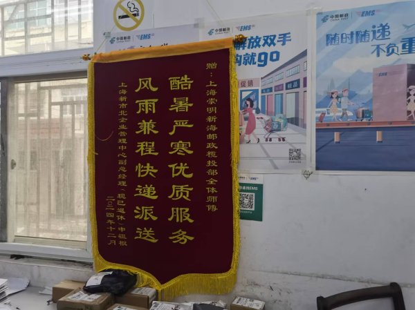 近日,上海市崇明區(qū)分公司新海支局投遞組收到了一份特別的禮物----一封感謝信和一面錦旗,錦旗上“酷暑嚴(yán)寒優(yōu)質(zhì)服務(wù),風(fēng)雨兼程快遞派送”,十六個(gè)字熠熠生輝,一面榮譽(yù)的錦旗,一封真摯熱情的感謝信,是用戶(hù)對(duì)新海支局投遞組的信任與感激,更是對(duì)全體投遞“師傅”的最大肯定。