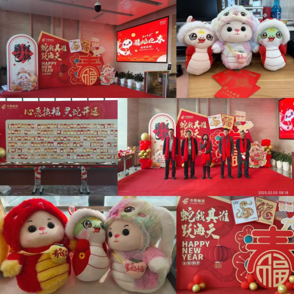 祥蛇賀歲辭舊去,瑞氣呈祥迎新來。2月5日,春節(jié)假期后首個工作日,泰州市分公司領導班子向返崗員工集體拜年,并送上新春祝福。在市分公司一樓大廳,“福蛇迎春”“蛇我其誰躍海天”等大紅背景標語,營造出了濃濃的節(jié)日氛圍。在熱情洋溢的致辭后,公司領導班子為員工們送上蛇年吉祥公仔——“莓煩惱”“有錢花”,寓意好運和祝福。在“心愿換福 靈蛇開運”的紅包墻下,員工們提筆寫下自己的新年愿望,祝愿郵政事業(yè)蒸蒸日上,祝愿工作家庭順心美滿。隨后,領導班子成員分批前往各支局、攬投部,向生產(chǎn)經(jīng)營一線的員工送上新年祝福。