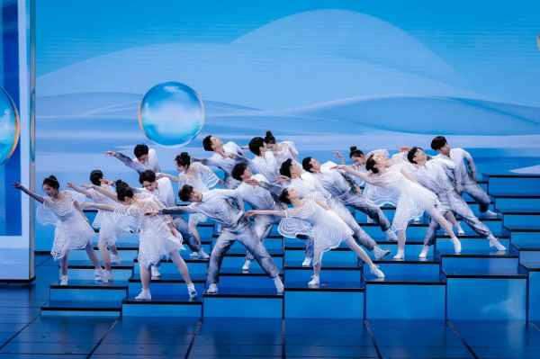 在晚會(huì)剛開場(chǎng)不久的歌曲《登高》,伴舞全部由武漢郵政藝術(shù)團(tuán)的舞蹈演員們擔(dān)當(dāng)。舞臺(tái)上,他們的動(dòng)作整齊劃一,每一個(gè)步伐都精準(zhǔn)有力,每一次跳躍都充滿力量,每一個(gè)表情都飽含深情,極具感染力,瞬間點(diǎn)燃了現(xiàn)場(chǎng)氣氛。在表演過程中,他們的默契配合令人贊嘆,將舞蹈的藝術(shù)美感展現(xiàn)得淋漓盡致,充分彰顯出深厚的舞蹈功底和極高的團(tuán)隊(duì)協(xié)作水平。
