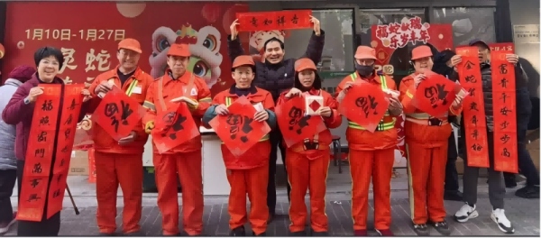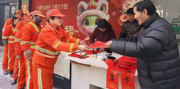 活動(dòng)現(xiàn)場(chǎng),特別邀約了三位杭郵書畫協(xié)會(huì)的資深書法大師,他們滿懷著熱情,鋪開了一張張充滿喜慶的紅色宣紙,蘸點(diǎn)濃墨、恣意揮毫,親身為現(xiàn)場(chǎng)的戶外工作者們書寫出一幅幅充滿著吉祥寓意、濃厚年味的對(duì)聯(lián)與“?!弊?。落筆之處,遒勁有力,每一筆、每一劃都蘊(yùn)含著我們郵政人對(duì)戶外勞動(dòng)者們辛勤付出的認(rèn)可與尊重。而我們的雙菱路“愛心驛家”站點(diǎn)也因此呈現(xiàn)出了一份從未有過的文化光景與藝術(shù)氛圍,現(xiàn)場(chǎng)的戶外工作者們臉上都洋溢著贊賞與感激,紛紛表示郵政的這項(xiàng)活動(dòng)非常有意義,為他們的心靈上帶來了極大的鼓舞與溫暖。