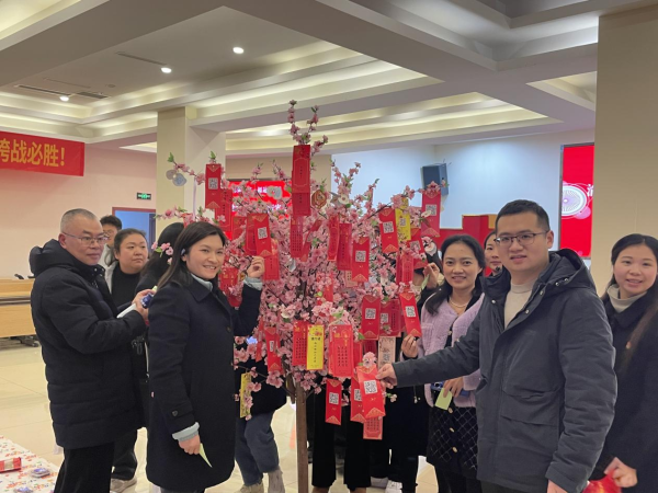 活動現(xiàn)場場地裝點得格外喜慶。5個精心設計的游戲環(huán)節(jié),各有特色,趣味十足?!叭θ贰眳^(qū)域,員工們屏氣斂息,手持套圈精準投擲,套中獎品時,歡呼與掌聲瞬間響起;“幸運大轉盤”前人潮涌動,大家滿懷期待轉動轉盤,指針停下,或是歡呼雀躍,或是開懷大笑,每一次都是對幸運的期盼?!昂衾踩Α庇螒蚧盍M滿,員工們矯健的身姿展現(xiàn)出蓬勃朝氣。最具文化氛圍的當屬“猜燈謎”,大家圍在謎語前,或獨自沉思,或熱烈討論,破解謎題后的喜悅,讓大家充分領略到傳統(tǒng)文化的獨特魅力。