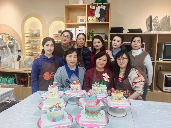 烘焙老師從蛋糕制作的方法、奶油的涂抹、裝飾造型等幾個方面進行了講解和示范。女職工們迅速進入狀態(tài),戴上圍裙、手套,一個個變身 “烘焙達人”,由手握法槌變成操縱抹平刀,濃香的奶油、五彩的糖果在她們的巧手下,把蛋糕裝點得獨具匠心、造型別致?;顒蝇F場歡聲笑語不斷,氣氛溫馨甜蜜,這不僅是一次獨特的美食體驗,更是一種創(chuàng)造美的過程,在奶油與糖果的碰撞中彰顯節(jié)日儀式感。