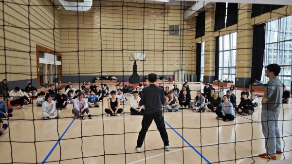 培訓(xùn)當(dāng)天,學(xué)員們?cè)趯I(yè)教練的耐心指導(dǎo)下,依次學(xué)習(xí)了站位、基本手型,移動(dòng)步伐,發(fā)球、墊球、托球等技術(shù)動(dòng)作,并對(duì)場(chǎng)地,規(guī)則等內(nèi)容進(jìn)行簡(jiǎn)單介紹。在完成基本教學(xué)之后,教練逐步加大強(qiáng)度,開始結(jié)合發(fā)球,講解進(jìn)攻思路和防守站位,并逐一為所有學(xué)員進(jìn)行接發(fā)球指導(dǎo)。培訓(xùn)接近尾聲,學(xué)員們熱情高漲,技癢難耐,自發(fā)“組局”進(jìn)行團(tuán)隊(duì)對(duì)抗,并邀請(qǐng)教練在一旁現(xiàn)場(chǎng)指導(dǎo)。球場(chǎng)上學(xué)員們?nèi)褙炞?,?chǎng)邊觀眾叫好連連,笑聲和歡呼聲此起彼伏,相互交融。