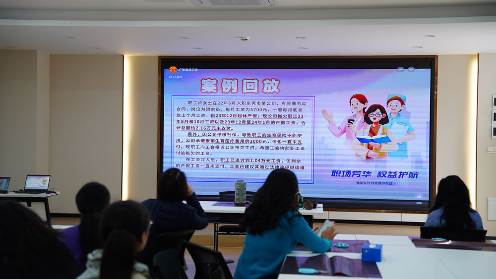 活動伊始,以“職場芳華 權益護航——賦能女性自我維護權益”為主題的直播講座正式開啟。講座邀請了資深法律專家,圍繞女職工在職場中可能遇到的勞動權益保障、職業(yè)發(fā)展限制、生育權益等熱點問題,結合實際案例,深入淺出地進行了詳細解讀。女職工們認真聆聽,主持人與專家在一問一答間,法律知識不再晦澀難懂,女職工們切實增強了依法維權的意識,掌握了更多維護自身合法權益的有效途徑。