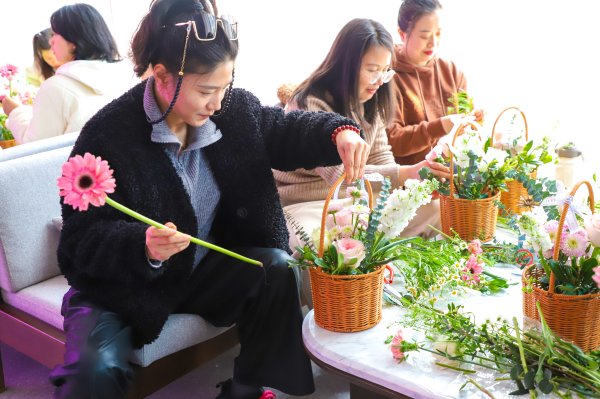 聽完老師的講解,女職工們插花創(chuàng)作熱情高漲。大家手持鮮花修剪枝葉、搭配色彩,把普通的花材變成一籃籃細致精美的花藝作品。現(xiàn)場花香四溢、笑語歡聲,大家手捧鮮花互相交流心得,分享喜悅、暢談人生,用鏡頭記錄下自己的“花漾”成果....