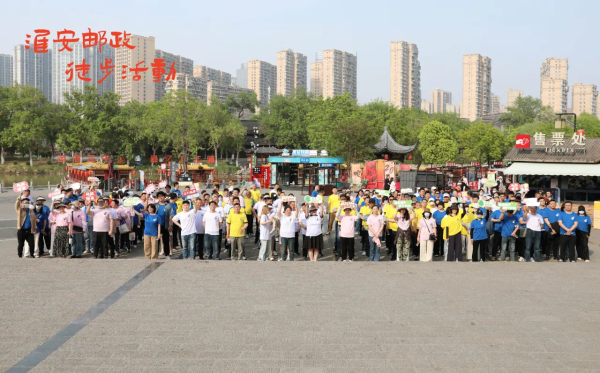 暮春時(shí)節(jié),里運(yùn)河畔的國(guó)師塔廣場(chǎng)已是一派生機(jī)勃勃的景象。身著統(tǒng)一運(yùn)動(dòng)裝的郵政職工們精神抖擻,藍(lán)白粉黃相間的文化衫與碧水藍(lán)天相映成趣。隨著一聲“出發(fā)”號(hào)令,浩浩蕩蕩的徒步隊(duì)伍沿著4公里的濱水步道闊步向前。