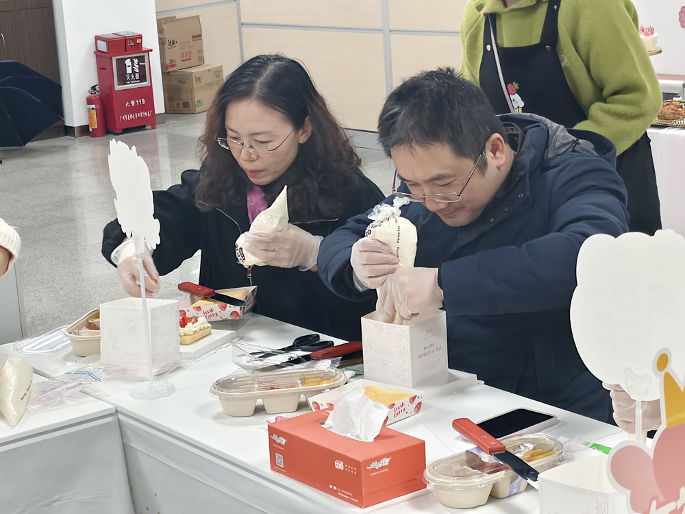 組織了一場“甜蜜烘焙,溫情三八”活動(dòng)。在專業(yè)烘焙師耐心指導(dǎo)下,女職工們紛紛挽起袖子,從基礎(chǔ)的面粉攪拌,到細(xì)膩的奶油裱花,再到最后的創(chuàng)意裝飾,一步步精心雕琢屬于自己的蛋糕作品?;顒?dòng)結(jié)束后,這些飽含心意的甜點(diǎn),有的被女職工們帶回家與家人分享,傳遞著節(jié)日的喜悅;有的則留在現(xiàn)場,與同事們一同品嘗,讓溫暖與關(guān)懷在舌尖蔓延。