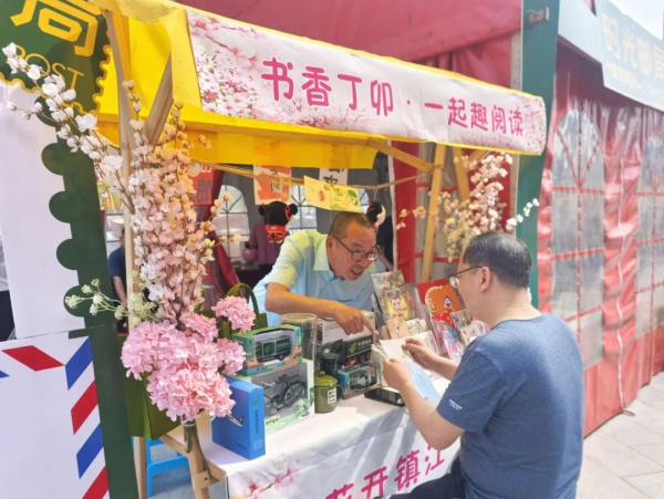 “媽媽,你看這個(gè)郵亭好美呀,到處都點(diǎn)綴著小花,還有好多圖書和好玩的玩具呢!”一位小朋友興奮地喊道?!靶∨笥?,歡迎來到鎮(zhèn)江郵政臨時(shí)打造的‘花開鎮(zhèn)江’主題郵局,郵局后面還有大棚書展哦,歡迎你來賞花、品書。”工作人員熱情地回應(yīng)道。