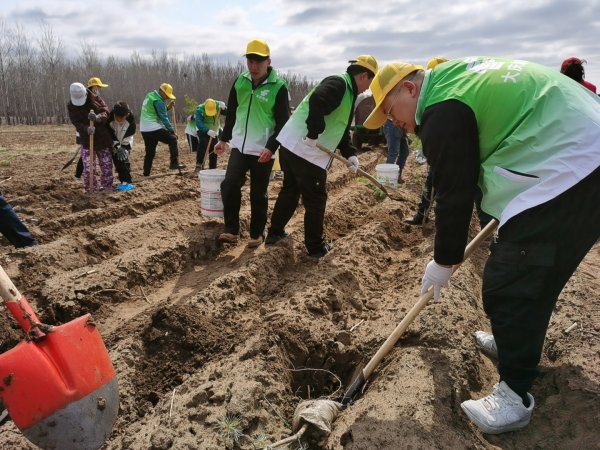 4月19日全國植樹節(jié)上午,大慶市郵政分公司百名職工身著綠白漸變生態(tài)馬甲、頭戴明黃安全帽,在杜爾伯特縣五馬沙坨封育修復區(qū)列隊集結,開展“我為三北種棵樹”主題植樹活動,展現(xiàn)出郵政人扎根北疆、修復生態(tài)的堅定承諾。