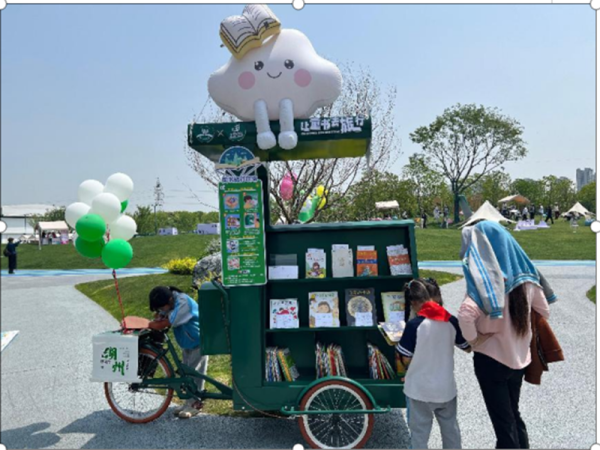 活動(dòng)現(xiàn)場(chǎng),小梅港體育公園被裝扮得書香四溢,處處洋溢著閱讀的氛圍。湖州市公共圖書館精心策劃了一系列豐富多彩的活動(dòng)議程,吸引了眾多市民駐足參與。而在這場(chǎng)文化盛宴中,湖州市郵政公司在書潮市集區(qū)設(shè)立特色攤位,不僅為閱讀者提供了涵蓋文學(xué)、社科、少兒讀物等多品類書籍,并推出郵政“童書漂流車”創(chuàng)新服務(wù),鼓勵(lì)孩子們交換圖書,傳遞知識(shí)與快樂。成為現(xiàn)場(chǎng)一道亮麗的打卡風(fēng)景,吸引眾多閱讀愛好者駐足參與。