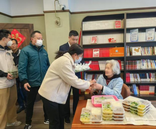 考慮到85歲以上高齡老人行動不便,大家分組前往老人家門口送上慰問服務。老人們接過這些手制的青團時,紛紛露出開心的笑容,還對餐飲中心長期送餐服務表達誠摯的謝意,夸贊郵政大樓食堂為老人們送上的餐食越來越營養(yǎng)可口。