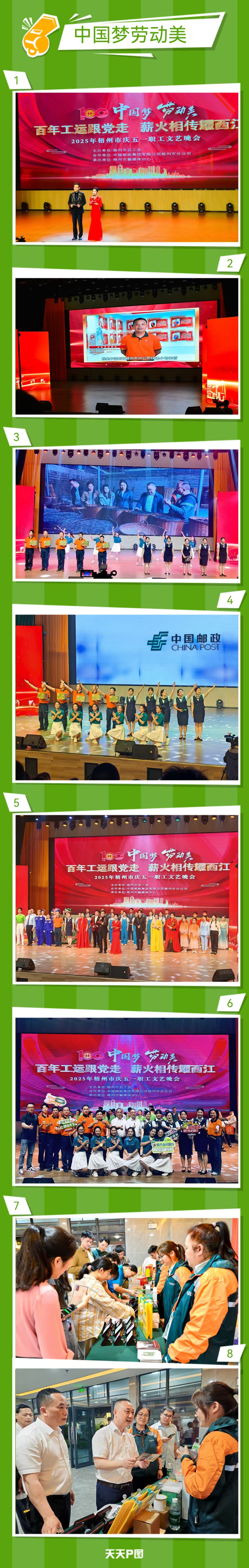 隨后,文藝演出精彩上演,現場氣氛熱烈,節(jié)日氛圍濃厚。梧州郵政選送的歌舞《向理想前進》成為一大亮點,節(jié)目以動人的旋律與優(yōu)美的舞姿,深情述說著百年郵政的發(fā)展歷程。當清晨第一縷陽光灑落,郵政快遞員早已穿梭于城市街巷與鄉(xiāng)村阡陌,他們用雙手丈量過億萬包裹,以車輪軌跡勾勒山河版圖,每一份快遞的準時送達,都是 “郵政速度” 與使命擔當的生動詮釋。節(jié)目將 “郵政綠” 與 “工運紅” 巧妙融合,彰顯出 “百年工運耀西江,薪火相傳鑄輝煌” 的深厚內涵,展現新時代郵政人的昂揚風貌,最終在比賽中斬獲全市二等獎。