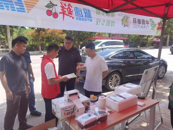 楊春勝總經(jīng)理在慰問過程中詢問了櫻桃項(xiàng)目運(yùn)行情況、收寄作業(yè)中寄件寶的使用情況,新建成的狄寨攬投部運(yùn)行情況,對(duì)存在的問題現(xiàn)場(chǎng)指導(dǎo)。同時(shí)了解了櫻桃項(xiàng)目與金融聯(lián)動(dòng)項(xiàng)目開展情況,要求各單位利用櫻桃攬收契機(jī)提升金融存儲(chǔ)業(yè)務(wù)。