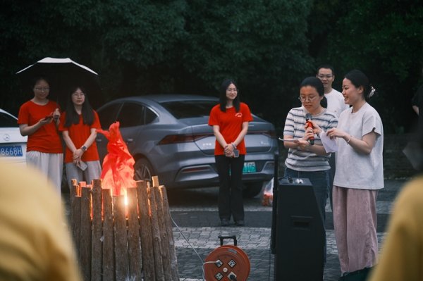 在“星火燃情”的模板,篝火晚會在眾人的期待中拉開帷幕,火把點(diǎn)燃象征團(tuán)結(jié)與希望的篝火。隨著火焰騰空而起,現(xiàn)場爆發(fā)出熱烈的掌聲和歡呼聲,瞬間點(diǎn)燃了全場的熱情。通過教官們前期精心策劃準(zhǔn)備開展了各類的趣味游戲比賽,在輕松愉快的氛圍中,多才多藝的隊(duì)員們輪番登場,“心跳加速版‘擊鼓傳花’”“桃花朵朵開”等趣味游戲讓現(xiàn)場笑聲連連,而在“聽曲識歌”的活動(dòng)中則考驗(yàn)了團(tuán)隊(duì)的默契與協(xié)作。獲勝隊(duì)伍獲得了精美獎(jiǎng)品,失利者則用幽默的懲罰逗樂全場。在比賽過程中,各連隊(duì)齊心協(xié)力,相互配合,很好的發(fā)揮了團(tuán)隊(duì)的協(xié)同力,凝聚力,臉上都洋溢著歡樂的笑容,在晚會最后還開啟了集體合唱·夢想共鳴環(huán)節(jié),大家拉起身邊伙伴的手,圍成同心圓。從今天起,大家不僅是同事,更是彼此職場路上的星光。