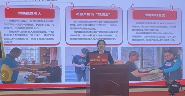 近期,丹東市郵政分公司參加了丹東市總工會(huì)組織開展的“奮進(jìn) 風(fēng)采”勞模先進(jìn)事跡宣講會(huì)。宣講“丹東市五一勞動(dòng)獎(jiǎng)?wù)隆鲍@得者—東港郵政分公司橋南攬投部攬投員曲洪波同志。