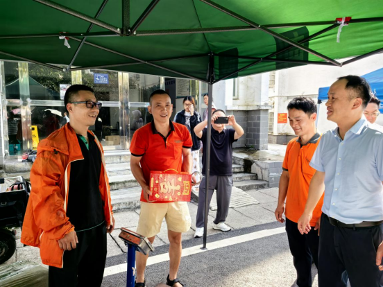 “大家辛苦了!”,在中國郵政醒目標志的包裹攬收點前,市公司黨委委員、副總經理、工會主席江偉對參與校園畢業(yè)季包裹攬收的工作人員們致以親切地問候,了解畢業(yè)季包裹收寄情況,叮囑大家在高溫下勞作要注意防暑降溫,保障安全生產,同時要求支撐部門做好人力、物力儲備,優(yōu)化攬收流程,更好地滿足高校學生寄遞需求,提供更優(yōu)質的服務體驗。