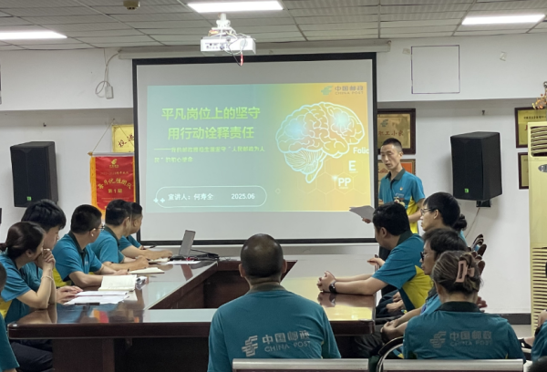 本次活動(dòng)邀請本單位“重慶五一勞動(dòng)獎(jiǎng)?wù)隆薄爸貞c市渝中區(qū)高層次人才”獲得者何壽全作為本次宣講的主講人。宣講會(huì)上,何壽全結(jié)合自身工作經(jīng)歷,用質(zhì)樸的語言、真摯的情感分享了他在平凡崗位上的奮斗故事。自2007年加入郵政以來,何壽全收寄郵件超300萬件,投遞郵件超162萬件,行經(jīng)郵路超40萬公里,服務(wù)客戶超9000戶,十余年零投訴。面對腰傷病痛始終堅(jiān)持將責(zé)任扛在肩上,將使命放在心上,用實(shí)際行動(dòng)托舉起郵政的責(zé)任和擔(dān)當(dāng),生動(dòng)詮釋了“人民郵政為人民”的初心使命。