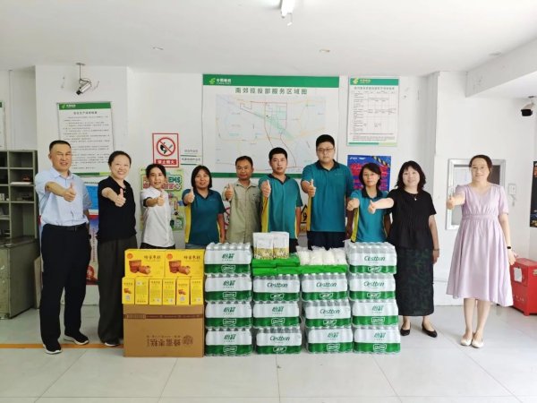 近日,鄭州迎來高溫“烤”驗,驕陽似火,熱浪灼人。為有效降低高溫作業(yè)對員工身體健康的危害,切實維護(hù)廣大一線員工健康權(quán)益,鄭州市分公司積極落實防暑降溫主體責(zé)任,重點關(guān)注一線攬投員、運輸司機(jī)等戶外作業(yè)員工,及時開展“夏送清涼”活動。7月14—15日,市分公司領(lǐng)導(dǎo)分赴一線班組進(jìn)行慰問,為員工送上綠豆、冰糖、水、面包、菊花茶等防暑降溫用品,助力一線員工清涼度夏。