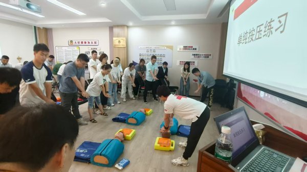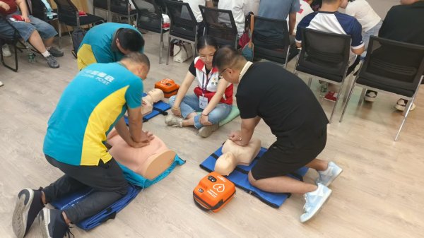 “按壓頻率要保持在每分鐘100-120次,深度至少5厘米,按壓時手臂要伸直……”7月下旬,楊浦郵政工會組織的線下實操培訓(xùn)現(xiàn)場,楊浦區(qū)紅十字會的專業(yè)講師正手持模擬人教具,為35名郵政職工細(xì)致講解心肺復(fù)蘇的操作要點。