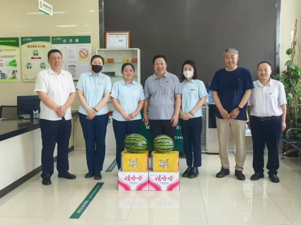 為切實(shí)關(guān)心員工身心健康,傳遞企業(yè)關(guān)懷,大慶市郵政分公司領(lǐng)導(dǎo)心系一線員工,不畏炎熱,親自前往各郵政營(yíng)業(yè)場(chǎng)所,開(kāi)展了一場(chǎng)意義非凡的“夏日送清涼”慰問(wèn)活動(dòng)。他們帶著滿(mǎn)滿(mǎn)的關(guān)愛(ài)與牽掛,為奮戰(zhàn)在高溫一線的員工們送來(lái)了防暑降溫物資和貼心問(wèn)候。他們將精心準(zhǔn)備的礦泉水、清涼飲料、西瓜等,一一送到員工們的手中。這些物資雖然簡(jiǎn)單,但卻承載著公司對(duì)員工們的深深關(guān)懷與濃濃愛(ài)意。