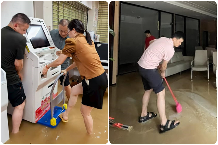 更嚴(yán)峻的是,因持續(xù)強降雨,樟木頭、常平、黃江、鳳崗、塘廈等5個鎮(zhèn)區(qū)5日凌晨相繼告急。面對來勢洶洶的雨情,東莞郵政各級分會迅速啟動防汛應(yīng)急響應(yīng),13個金融網(wǎng)點暫停營業(yè)。相關(guān)單位及時轉(zhuǎn)發(fā)預(yù)警信息,通知員工停工停業(yè)確保人身安全。受災(zāi)鎮(zhèn)區(qū)領(lǐng)導(dǎo)提前部署災(zāi)后搶險,在安全前提下第一時間組織員工參與網(wǎng)點救災(zāi),盡顯“遇事不慌、從容應(yīng)對”的風(fēng)貌:鳳崗總經(jīng)理丁耀永帶頭趕赴現(xiàn)場,組織搶險恢復(fù),同步轉(zhuǎn)移重要憑證、票據(jù)及電子設(shè)備,避免二次受損;檢修電路網(wǎng)絡(luò)、清潔消毒營業(yè)場所、采購沙袋加固出入口,同時告知客戶臨時停業(yè)情況,引導(dǎo)通過電子渠道辦理業(yè)務(wù),最大限度降低影響。