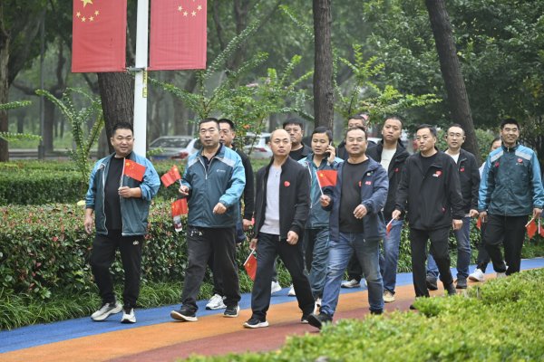 與此同時,其余職工踏上健步走之旅。大家手持小國旗,沿著步道悠然前行,時而駐足拍攝“我與國旗同框”的紀(jì)念照,時而交流工作中的趣事。
