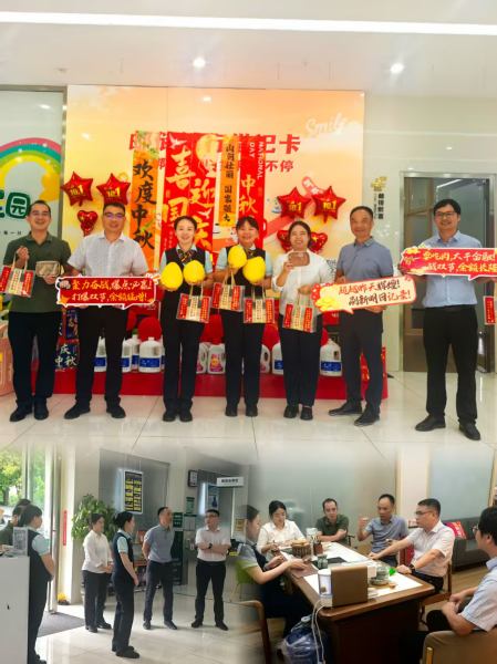 在物資準(zhǔn)備與現(xiàn)場氛圍營造上,各地既貼合需求又注重激勵。豬肉、魚肉成為慰問“標(biāo)配”,貴港額外準(zhǔn)備熟食與能量禮包,防城港補(bǔ)充奶茶等物資,百色更從合作商戶采購慰問品,深化銀商聯(lián)動。活動現(xiàn)場,“聚力奮戰(zhàn)爆點(diǎn)必贏”“要吃肉,大干金融;戰(zhàn)雙節(jié),余額長隆”等勵志標(biāo)語醒目陳列,鏡頭定格下員工手捧慰問品、斗志昂揚(yáng)的畫面,讓溫暖關(guān)懷與奮斗熱情相互交融。