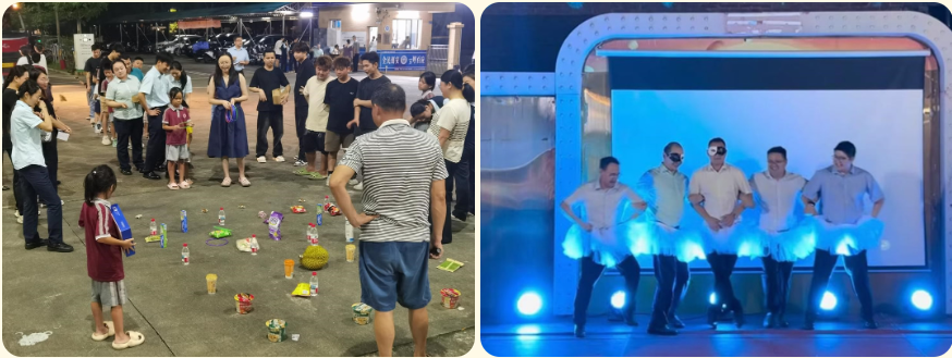 鳳崗分會以“喜迎中秋 歡慶國慶 郵你更團圓”為主題辦游園晚會,設(shè)美食體驗區(qū)提供水果、燒烤等,員工暢聊歡笑;游戲環(huán)節(jié)有“九九乘法加速度”“幸運滾滾樂”等,“歡樂套圈圈”的榴蓮大獎將氣氛推向高潮。橫瀝分會在678藝時代廣場辦中秋晚會暨員工生日會,猜燈謎、班組節(jié)目表演精彩紛呈,最后為下半年生日員工慶生,滿是溫暖。