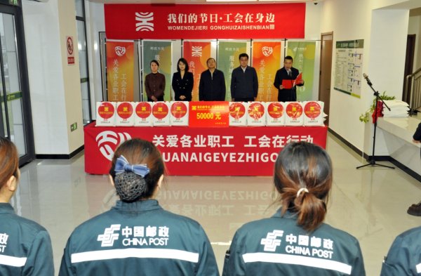 10月9日,在第56屆世界郵政日到來(lái)之際,山西省總工會(huì)黨組書(shū)記、常務(wù)副主席梁敬華一行蒞臨太原國(guó)際郵件互換局,看望慰問(wèn)奮戰(zhàn)在基層一線的郵政員工,為他們送上慰問(wèn)金和慰問(wèn)品,并向廣大郵政員工致以節(jié)日的問(wèn)候和崇高的敬意。省總工會(huì)黨組成員、副主席、省信息業(yè)工會(huì)聯(lián)合會(huì)主席楊曉蘭,省信息業(yè)工會(huì)聯(lián)合會(huì)常務(wù)副主席何燕,及省分公司黨委書(shū)記、總經(jīng)理劉軍亞,副總經(jīng)理、工會(huì)主席李永生陪同慰問(wèn)。